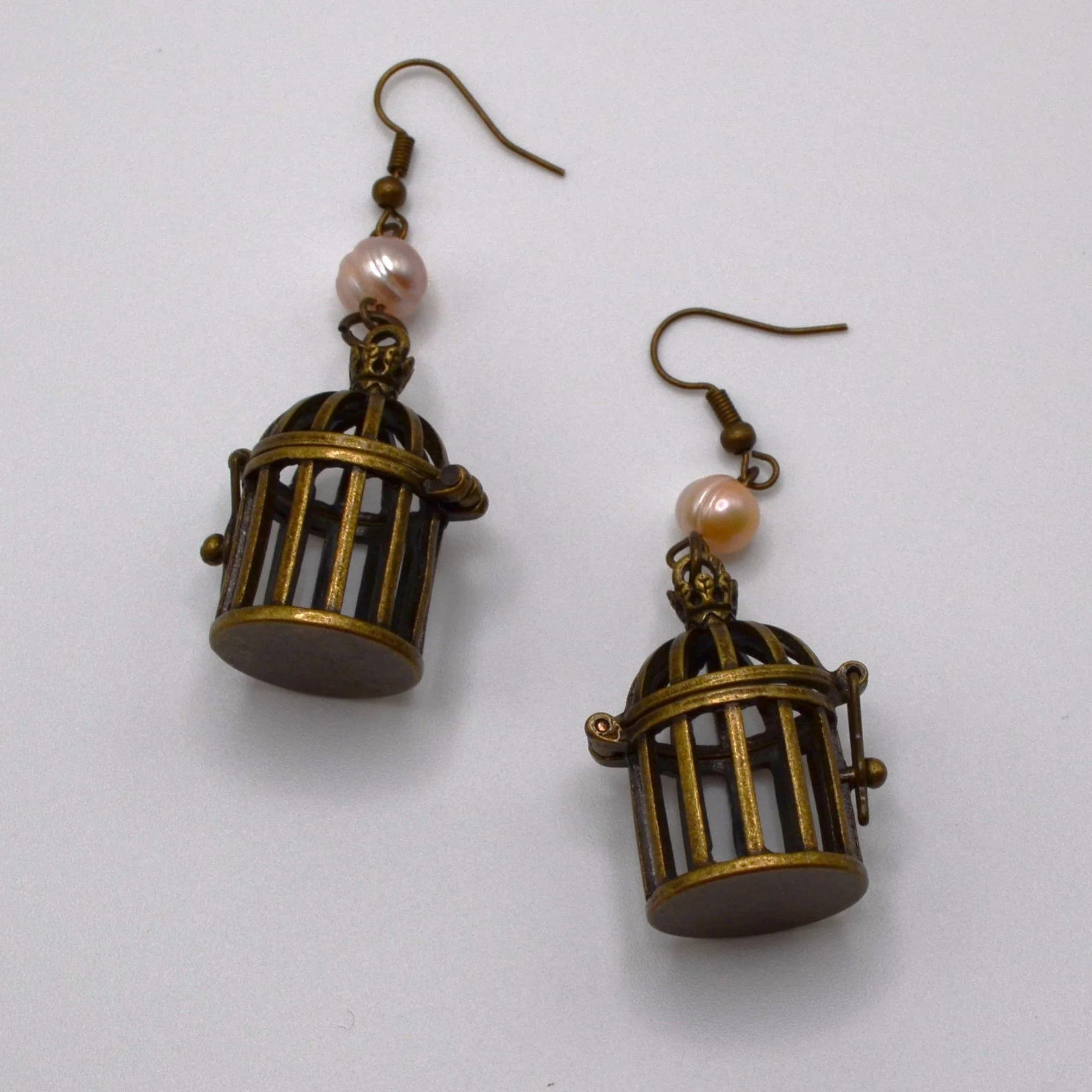 Image 1 of 1 Pearl and birdcage earrings $12.00 Brass birdcage earringsThey actually open! So cute!Freshwater pearls Add To Cart Added! Brass birdcage earringsThey actually open! So cute!Freshwater pearls